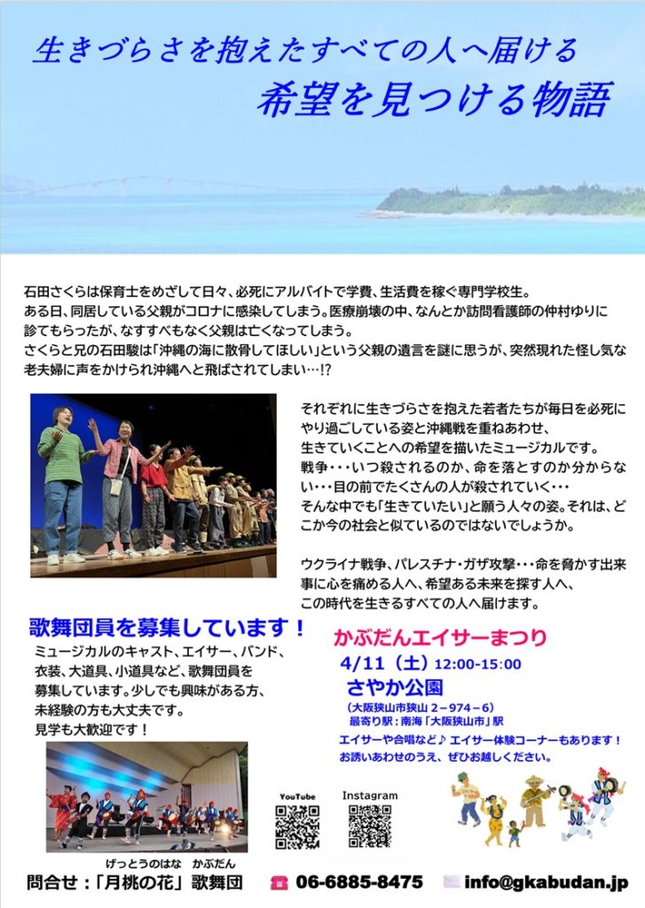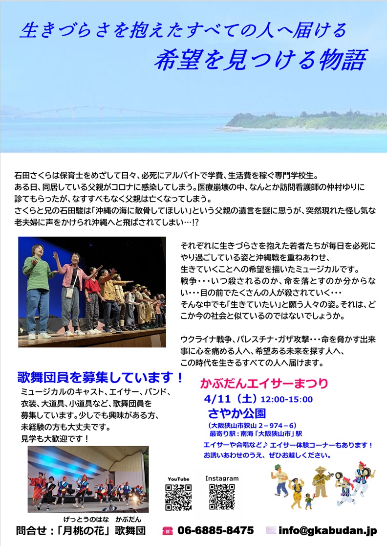 それぞれに生きづらさを抱えた若者たちが毎日を必死にやり過ごしている姿と沖縄戦を重ねあわせ、生きていくことへの希望を描いたミュージカルです。