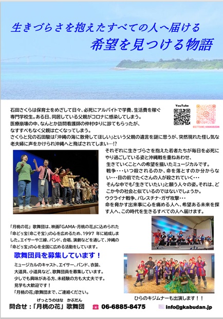 それぞれに生きづらさを抱えた若者たちが毎日を必死にやり過ごしている姿と沖縄戦を重ねあわせ、生きていくことへの希望を描いたミュージカルです。